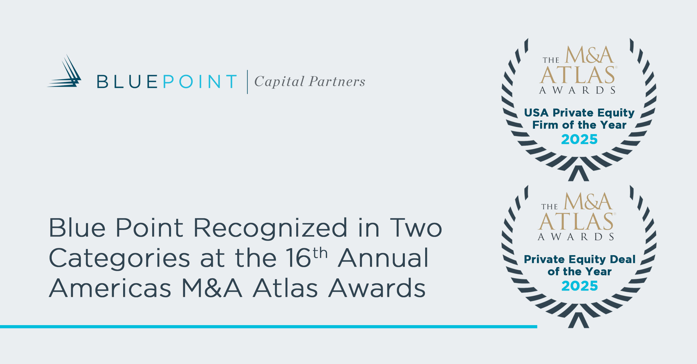 In addition to this year’s recognitions, Blue Point has been acknowledged by the Global M&A Network organization for past achievements, including: