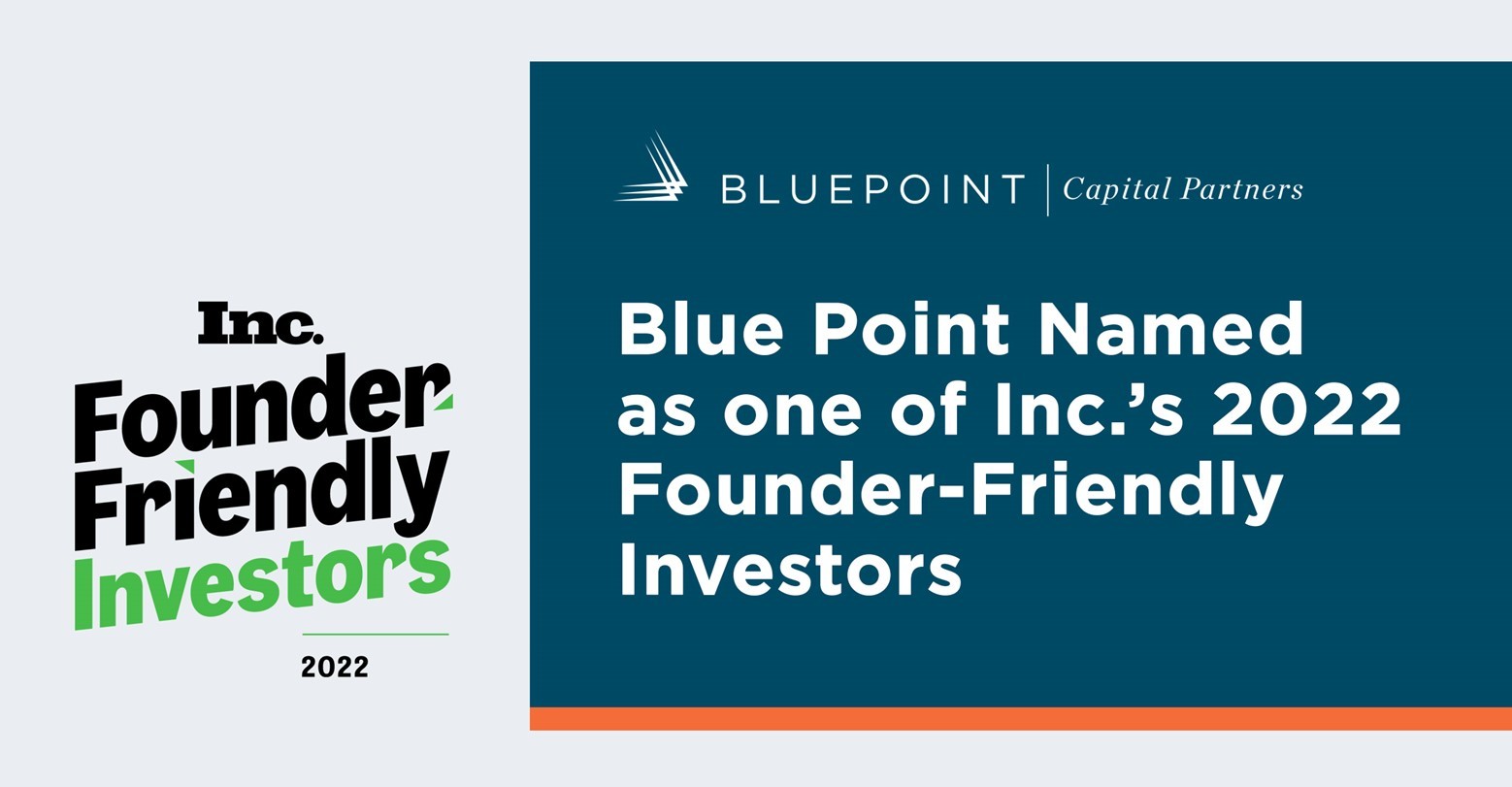 Blue Point Capital Partners is honored to have been named on Inc.’s List of Founder-Friendly Investors for the third time. According to Inc. Magazine, the award is given to firms recognized as “an investment partner that entrepreneurs can trust and collaborate with while receiving the financial support they need to help accelerate growth.”