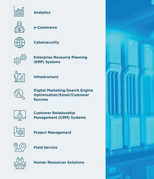 The breadth and complexity of D&D hardware, software, and professional services solutions in the market can be overwhelming for management teams to navigate without support. Our team works with company leaders across 10 key areas of the D&D landscape: